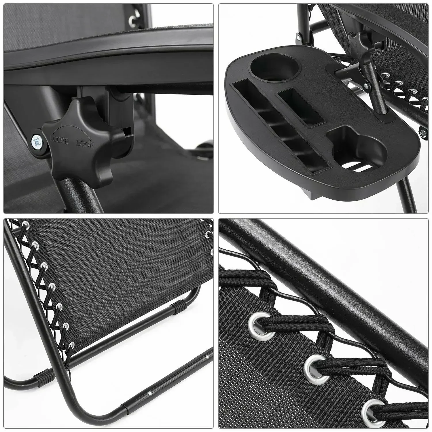 - Lockable Recliner System: It can be adjusted at any angle from 0 to 145 degrees. Smoothly glides to an ergonomic zero-gravity position, with replaceable elastic cords that immediately adjust to your body.
