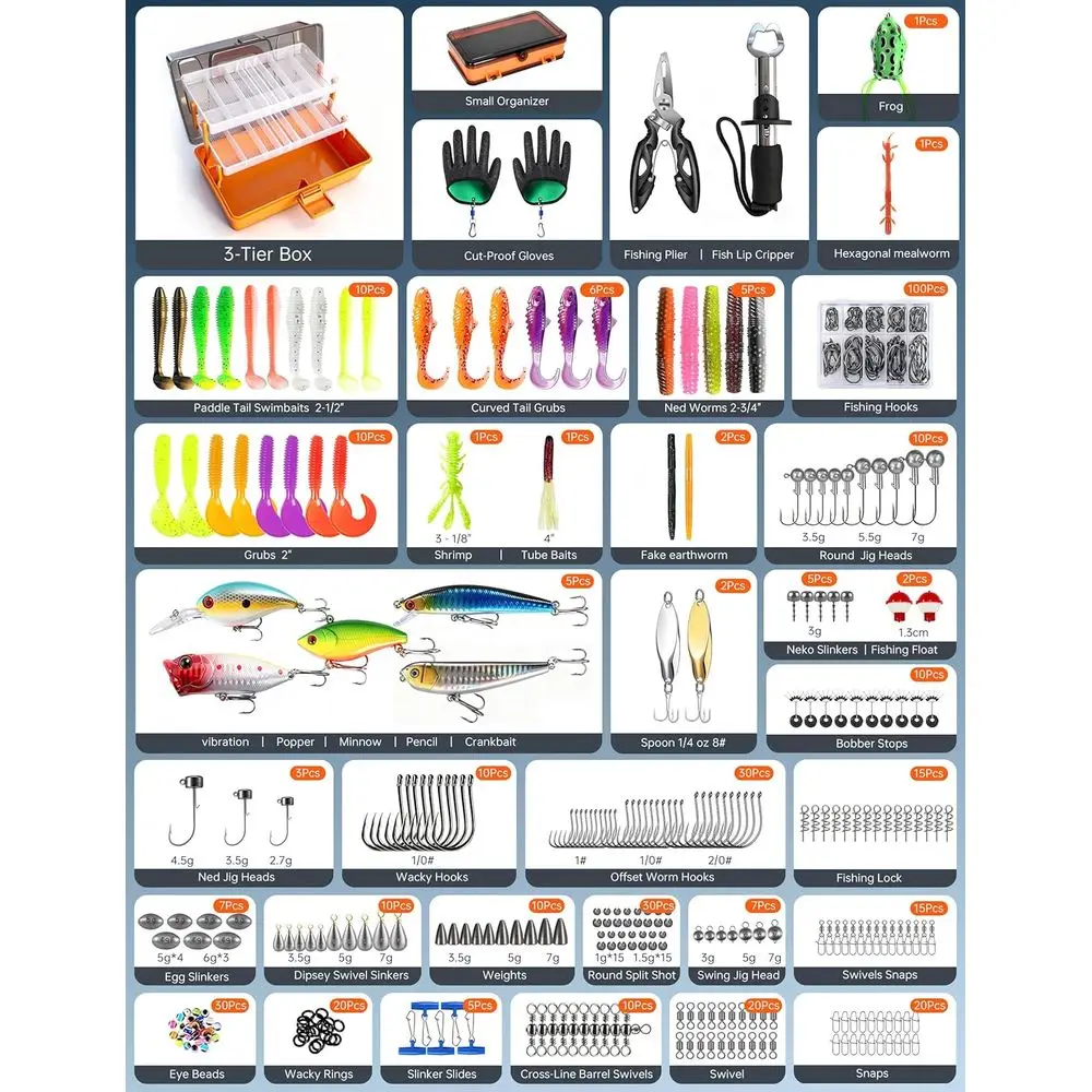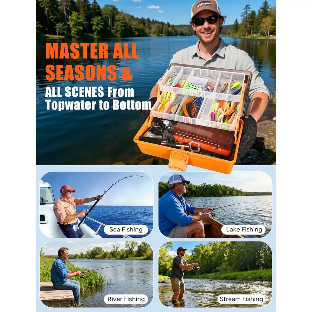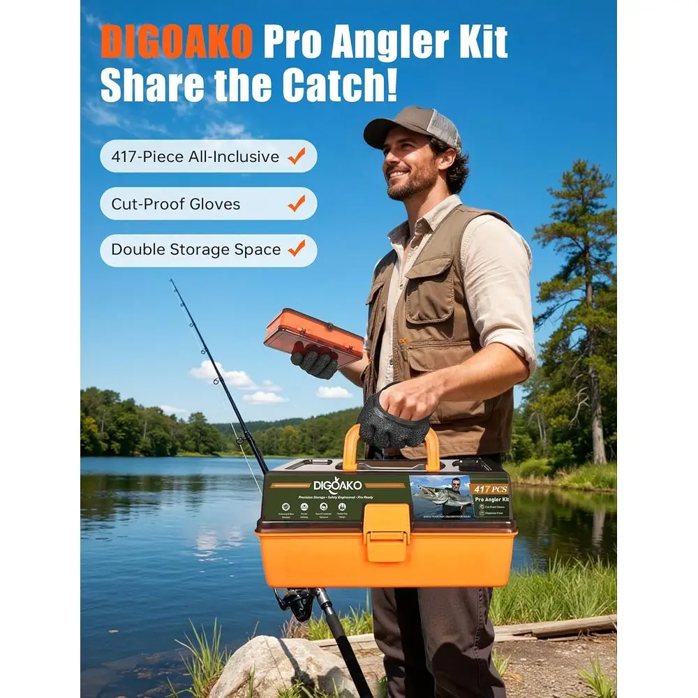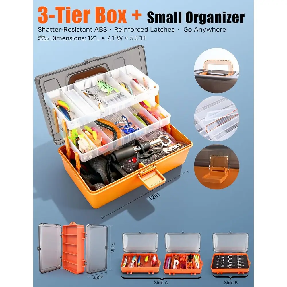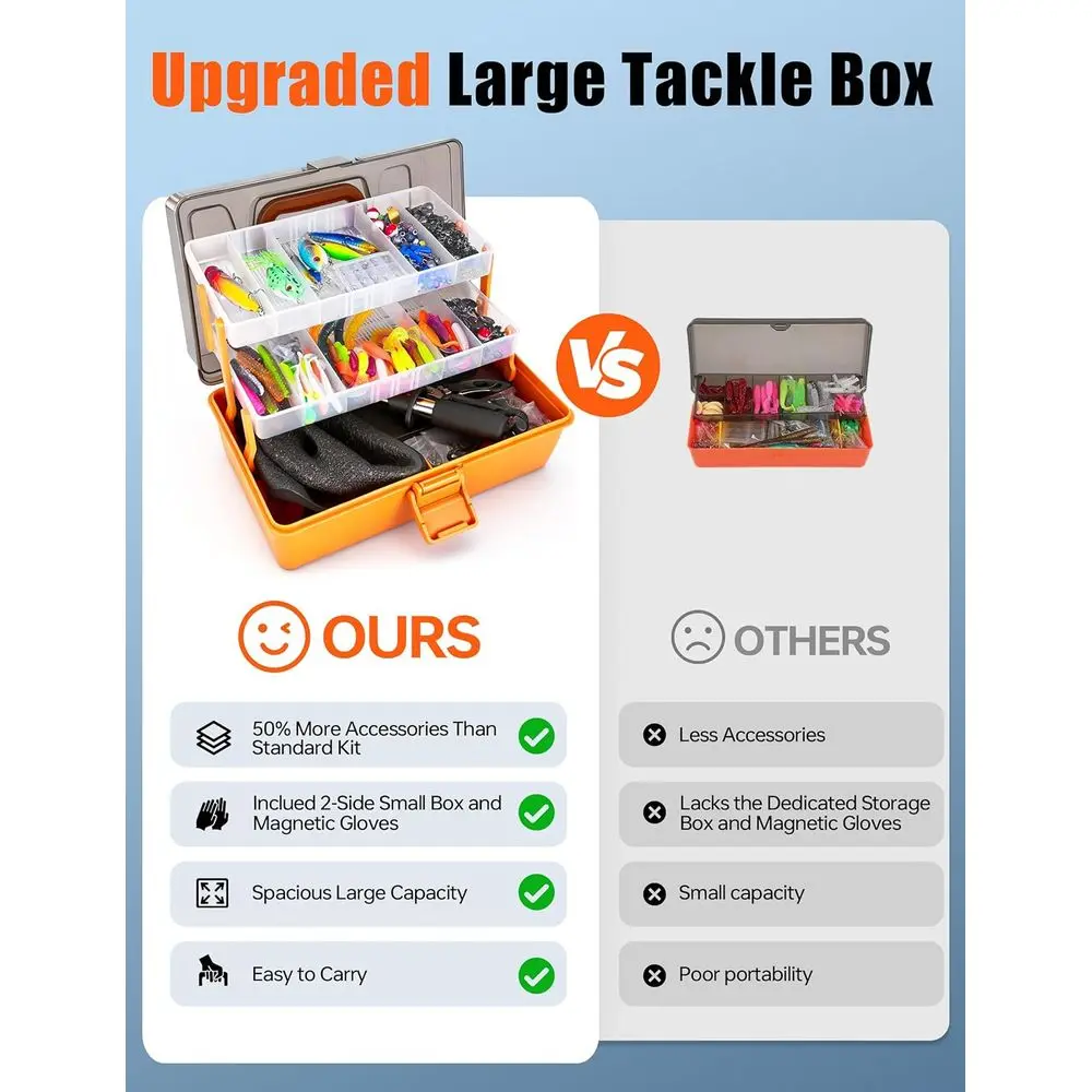 Premium 3-Tier Fishing Tackle Box with 417 Pieces Lure Kit, Essential Bass Fishing Gear Set, Ideal Gift for Anglers