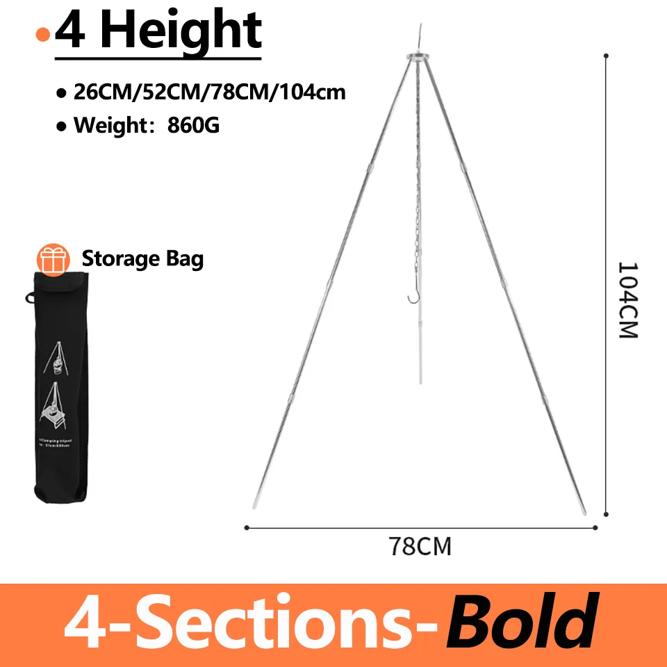 Camping Campfire Tripod for Hanging Pot Outdoor Cookware Picnic Cooking Pot Grill Rack Barbecue Support Aluminum Alloy Tripod