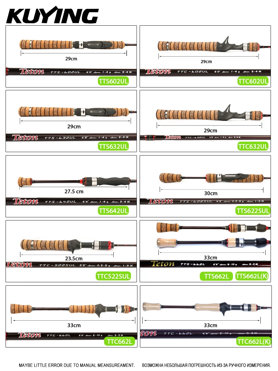 KUYING TETON L UL SUL 5’2″ 6′ 6’3″ 6’4″6’2″ 6’6″ Fishing Rod Lure Cane Spinning Casting FUJI Carbon 1-4g 0.8-3g 2-10g M-Fast bfs