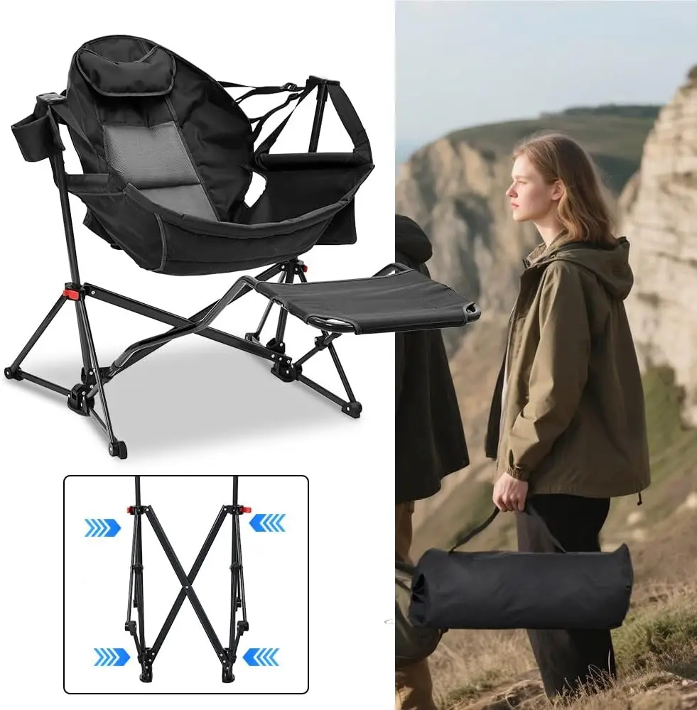 【Robust & Stable Construction】Built to last, the chair features a heavy-duty metal frame engineered with a triangular support structure for exceptional stability on uneven terrain. Tested to support significant weight with confidence, ensuring a safe and secure seating experience every time you use it.